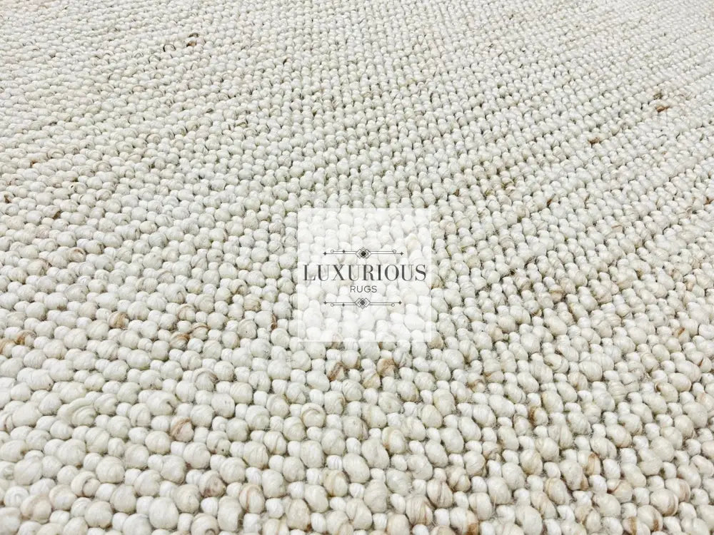 These subtle streaks are artfully integrated into the looped wool texture, offering a soft interplay of tones that shifts beautifully with the light. The result is a rug that feels both organic and elevated — plush underfoot, visually textured, and tailored for high-end interiors that appreciate nuance.