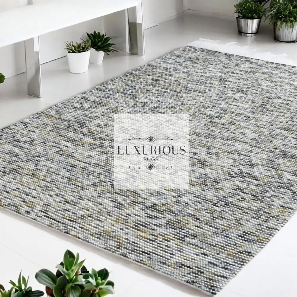 Pebbles Cherry Mineral Grey Yellow Hand-Woven wool Rug