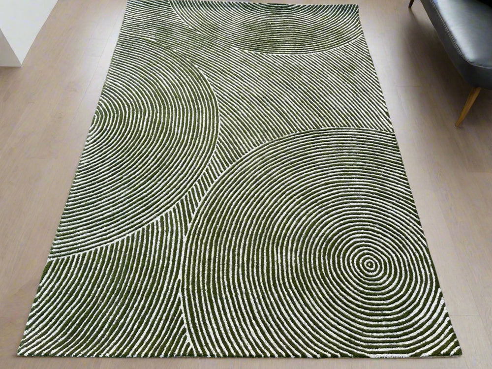 Viper Modern Rug 100% Wool Green Hand Tufted Rug