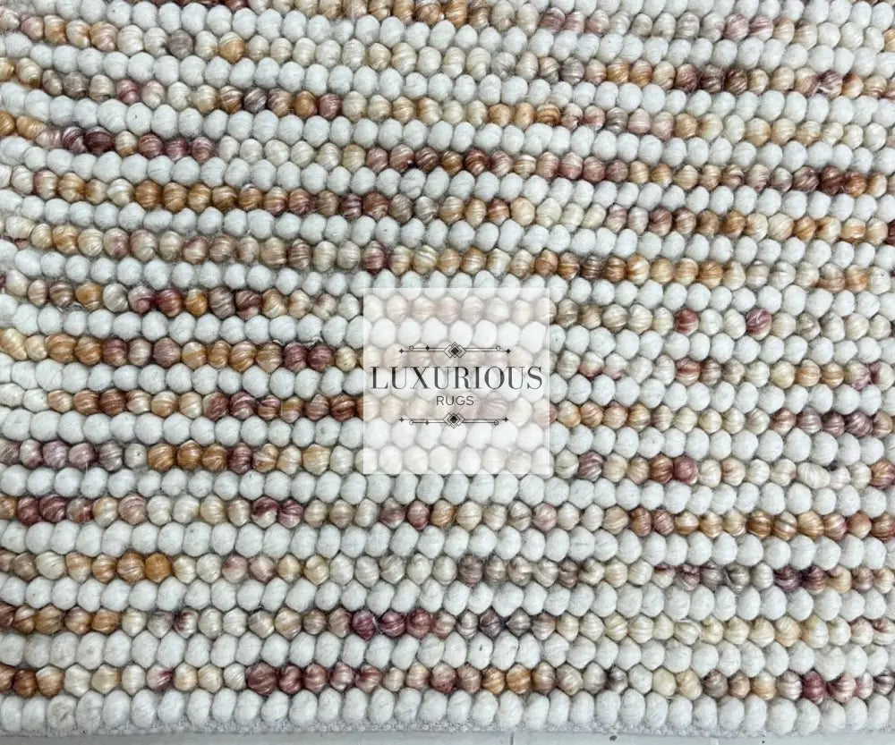 Discover elevated craftsmanship with the Pebbles Cherry, a luxurious evolution of our signature Pebble collection. Masterfully hand-woven in India, this refined wool rug features our iconic ball-loop construction, now enhanced with delicate “cherry” detailing fine accent threads interlaced throughout the base colour, adding depth, movement, and quiet sophistication.